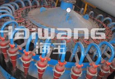 開始試車前要確保旋流器機組所有連接點都已緊固,清除管道、機組箱體中的各種殘留物,以免開車后有泄露及堵塞發生。確保把投入運行的旋流器閥門完全打開。閥門可以完全開啟(如運行旋流器)或完全關閉(如備用旋流器),但絕不允許處于半開啟狀態(即絕不允許用閥門控制流量)。如有可能,請先用清水試車。旋流器的進料可由泵入或高位槽方式提供。如果泵與旋流器吞吐量匹配,則壓力表顯示恒定讀數。要確保壓力表讀數不波動,如有明顯波動則需檢查原因。設備要求在不高于0.3MPa壓力下工作。設備在正常壓力下平穩運行時,要檢查連接點漏損量,必要時采取補救措施。檢查進入旋流器的殘渣引起的堵塞。旋流器進料口堵塞會使溢流和沉砂流量減少,旋流器沉砂口堵塞會使沉砂流量減小甚至斷流,有時還會發生劇烈震動。如發生堵塞,應及時關閉旋流器給料閥門,清除堵塞物。為防止堵塞,在水力旋流器組進料池可加防止粗料和雜物的設施(如除屑篩),同時在停車時應及時將進料池排空,以免再次開車時由于沉淀、濃度過高而引起堵塞事故。設備經清水試驗證實運行良好時,可輸入料漿運行。