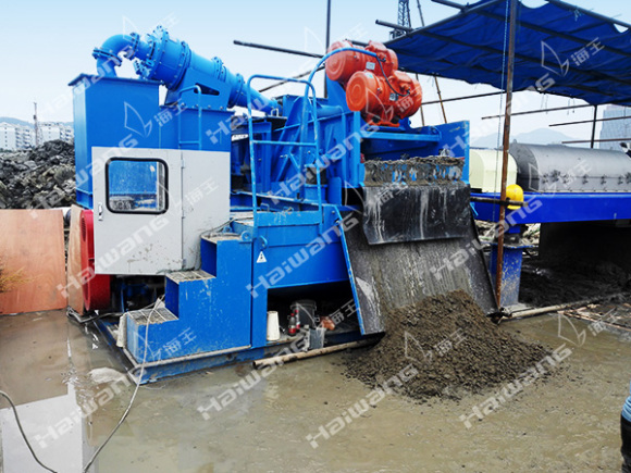除此海王FS系列泥漿凈化一體機將海王除砂旋流器與海王直線振動脫水篩進行撬裝組合,主要用于打樁泥漿、地下連續墻作業泥漿的除砂干排作業,可回收來料中40μm以上砂,單套處理能力從150m3/h到500m3/h有不同規格可供選擇。