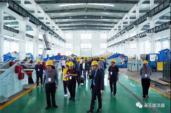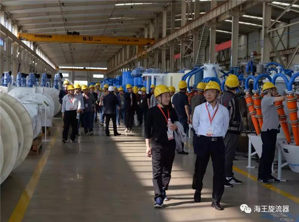 與會代表集體參觀威海市海王旋流器有限公司現代化生產車間及產品、文化展廳,共同感受海王30年發展歷程,見證海王30年創業成果。