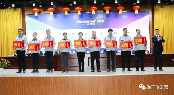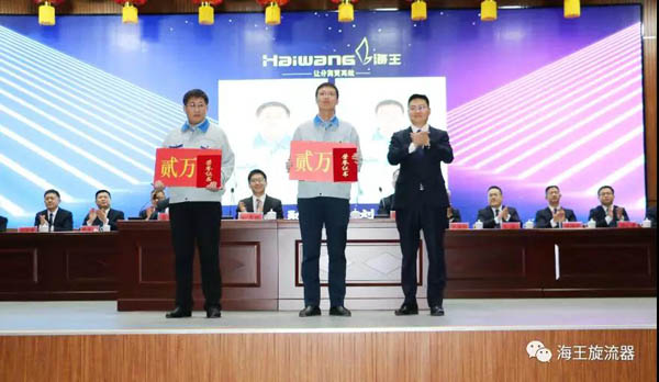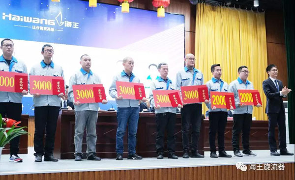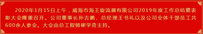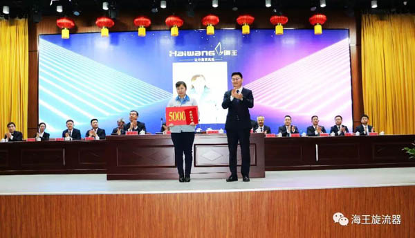 王書禮總經理作2019年度工作總結報告及2020年工作部署。王總在報告中指出,2019年是海王三十年新征程的開局之年,面對錯綜復雜的形勢和經濟下行的宏觀環境,海王領導班子帶領全體員工,堅持穩中求進工作總基調,沉著應對各種風險和挑戰,完整推進文化建設、人才建設、技術建設、市場建設、精益建設。砥礪奮進,攻堅克難,優良完成全年主要目標任務。實現了經濟指標穩步增長,銷售額、利稅等創歷史新高;企業組織架構不斷優化,增設PMC管理部、工程部,通過精益項目重新進行生產系統架構調整,生產經營管理系統更加精細化、化;人才隊伍快速成長,高層次技術人才、管理人才、技能型工人隊伍有所充實,員工流失率低;市場地位及海王品牌鞏固提升,傳統行業保持了較高的市場占有率,新行業、新領域、市場多處開花;技術優勢持續排名靠前,榮獲我國技術發明二等獎1項,中國黃金協會科技進步一等獎1項,中國煤炭工業協會科技進步二等獎1項;精益管理逐步推進,不斷提高現場6S管理水平,生產效率和計劃完成率逐步提升;員工待遇持續改善,人均收入穩步增長。多項指標取得可喜成績,各項工作取得新進展,實現了良好開局。王總強調,2020年全體員工要更加緊密團結、迎難而上、開拓進取,以功成不必在我的格局,和功成必定有我的決心,為公司跨越式發展貢獻全力,為成為世界分離行業名列前茅的宏偉目標而不懈努力。