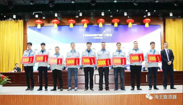 首先由王磊院長宣讀了《威海市海王旋流器有限公司關于表彰2019年度優良團隊和優良個人的決定》,公司董事長孫吉鵬、總經理王書禮、總工程師崔學奇、研究院院長王磊對獲獎的3個優良團隊、63名優良個人進行表彰授獎。