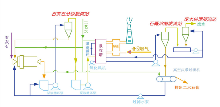 吸收塔排出的石膏漿液重量濃度一般為10%-20%,經旋流器濃縮脫水后底流濃度可達40%-60%,溢流濃度為2.5%-5%