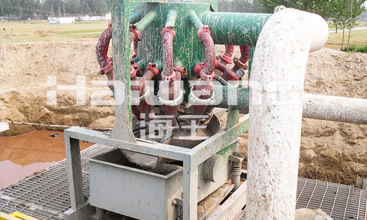 在石油鉆探作業中,使用旋流器除砂與脫泥,對鉆井泥漿進行凈化。使用Φ250mm(10′′)、Φ300(12′′)旋流器可以脫除 +45μm以上的巖屑,使用Φ100(4′′)、Φ125(5′′)旋流器可以脫除 +15μm以上的巖屑,使用Φ50(2′′)旋流器可以脫除 +10μm巖屑。